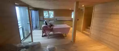 Das Ziel der Sanierung Chalet Waldchutz war eine Gesamterneurung Gebäudehülle & Heizungsanlage. Das Chalet Waldchutz wurde komplett ausgehöhlt und es wurde ein zusätzliches Stockwerk dazugebaut. Neu wird das Chalet Waldchutz mit einer Sole-Wasser Wärmepumpe betrieben. Dafür wurden 2x Erdsonden mit der Länge von 85 m gebohrt. Im Technikraum wurde ein Hygienespeicher für die Warmwasser- & Heizungsaufbereitung installiert. Die gesamte Wärmeverteilung findet mittels Fussbodenheizung statt.