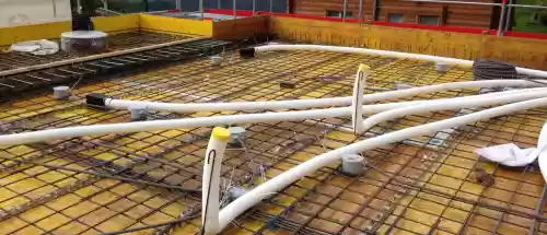 In dieser Energiezentrale ist eine Wärmepumpe Sole-Wasser, ein Lüftungsgerät mit WRG und alle nötigen Ventile, Expansionen und Pumpen installiert. Zusätzlich wurde eine thermische Solaranlage für Warmwasser in das Schrägdach integriert.