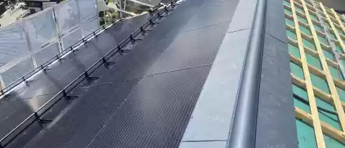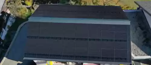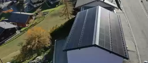 Die Dachfläche von ca. 148 m2 wurde komplett mit einer Photovoltaik Solaranlage gebaut. Die Photovoltaikanlage hat eine Leistung von 19.84 kWp. Der gewonnene Strom kann direkt über einen Wechselrichter selber verbraucht werden. Der Überflüssige Strom wird in das Stromversorgungsnetz der Firma ENBAG gespiesen. Die Einspeisung wird von der Firma ENBAG vergütet.